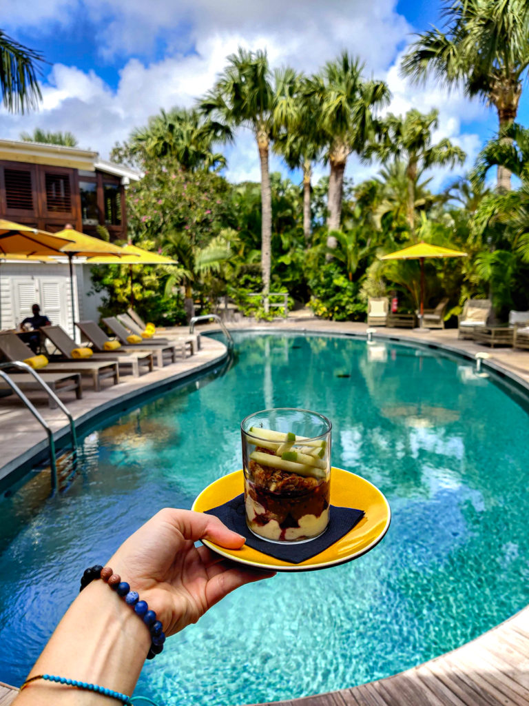 This restful getaway could not have come at a better moment. This COVID situation has driven us all mad, I'm tired from work, and to top it off the queasy ferry journey to St. Barth's could not have been more stressful given the rain storm we found ourselves in--it felt like something straight out of Moby Dick or Pirates of the Caribbean. Just get me into a shower and into a comfy bed so I can decompress from this ridiculously long day. Surely, if anything could help me decompress upon impact, it's St. Barts and the Gyp Sea staff. Upon arrival we were greeted with a tropical tea as the staff checked us in. Then off to our room we were, for a very well-needed shower.