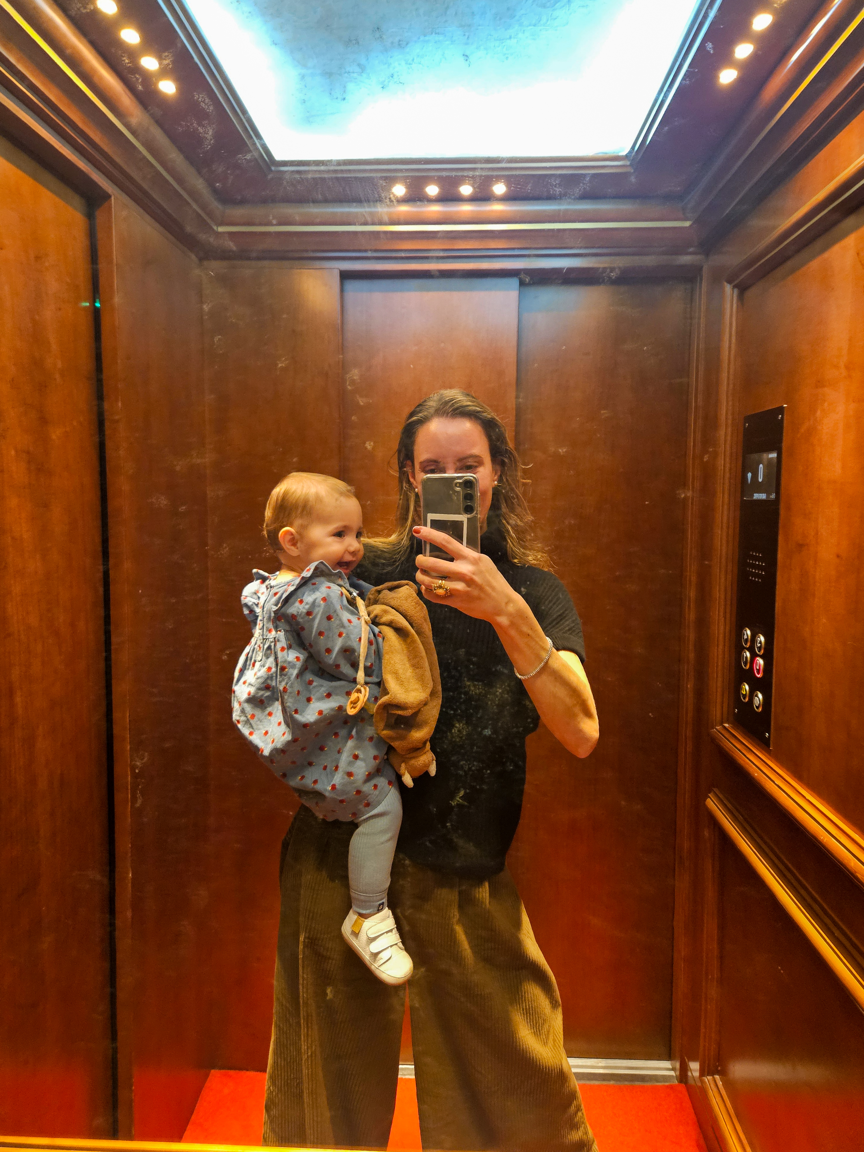 We finished with a tiramisu shaped in a perfect circle, a playful, elegant flourish that made the dessert feel like a tiny jewel in our evening. Patrick lingered over a Negroni at the bar while I escorted Sibby back upstairs, where she could wander freely among carpets and frescoes in her little kingdom.