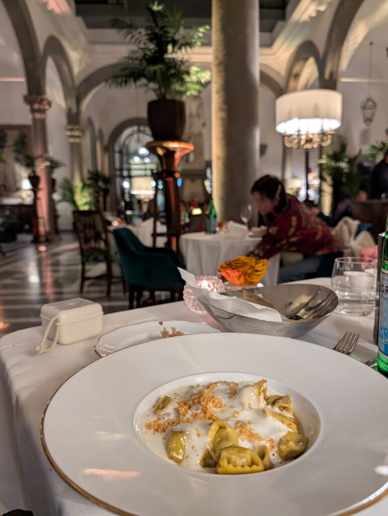 Whether you’re looking for baby-friendly restaurants in Florence, a hotel bistro in Florence with impeccable food, to indulge in white truffle season Florence specials, or simply an extraordinary meal in a Renaissance palazzo, Salotto Portinari delivers. Each bite confirmed this was Michelin-level dining without the star or the price tag. Salotto Portinari reminds you that in Florence, even dinner is art.