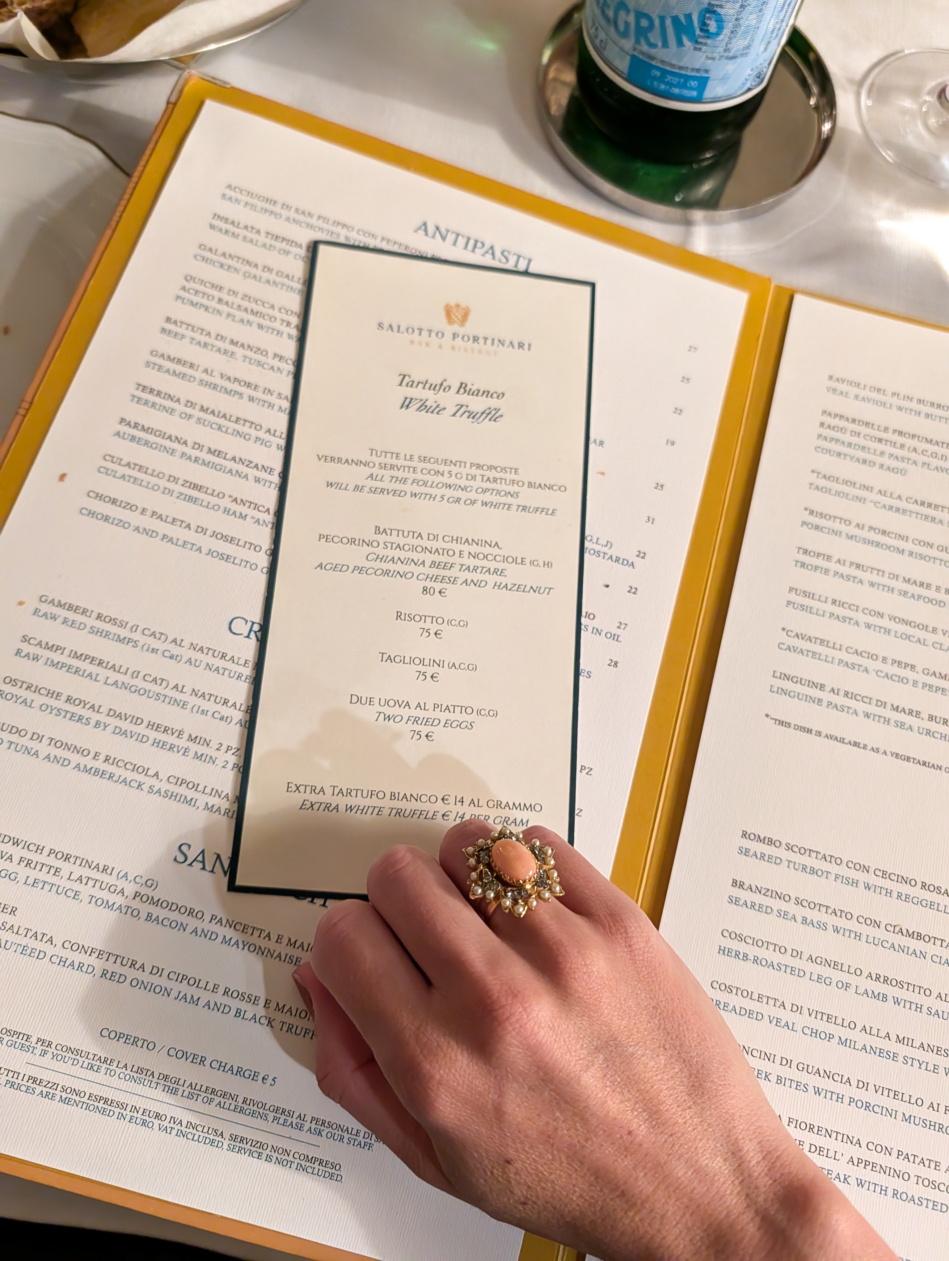 Following an indulgent afternoon at Palazzo Portinari Salviati's underground Vita Nova Spa, we ascended to Salotto Portinari Bar & Bistrot, the hotel bistro to experience white truffle season in Florence at its finest. By this point, Florence had slipped into that golden, honeyed hush that makes the city feel intimate and cinematic.